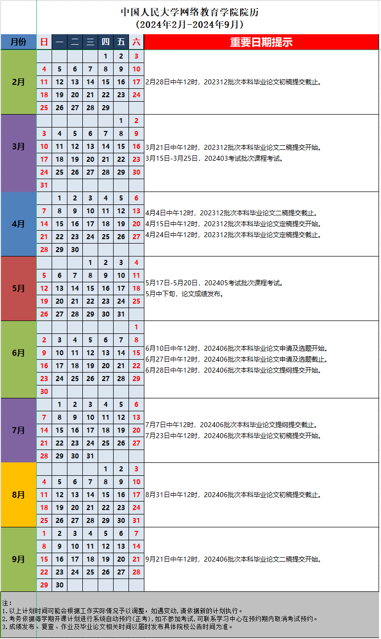 25.24春學期中國人民大學網絡教育學院院歷(2024年2月-2024年9月).xlsx